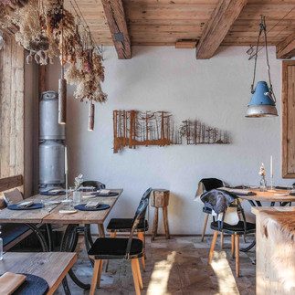 Poco distante, a Cortina d’Ampezzo, il SanBrite eleva il concetto di "Agricucina". Lo chef Riccardo Gaspari trasforma il latte del proprio caseificio e le carni dei propri pascoli in piatti stellati, in un ambiente dove il legno antico incontra linee contemporanee, raccontando la montagna in modo totale e sostenibile.