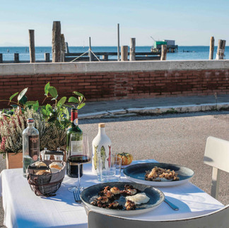 Tra le isole famose per i loro “orti” acquatici merita una menzione d’onore Pellestrina, dove l'Osteria Damare, con il suo caratteristico azzurro Tiffany, è il tempio del "chilometro mare": il pesce arriva direttamente dalle barche dei pescatori dell'isola, garantendo una freschezza che solo la laguna può offrire.